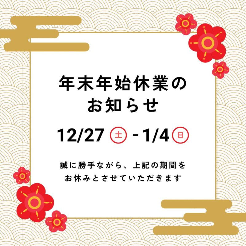 年末年始 休業日 お休み お正月 お知らせ シンプル 和風 ゴールド 赤 白 Instagram投稿